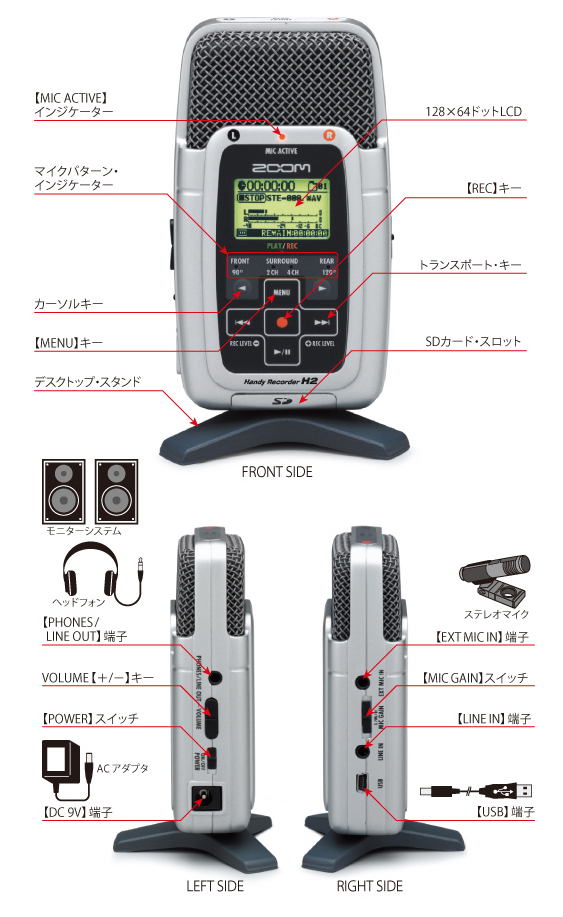 詳細は、http://www.zoom.co.jp/japanese/products/h2/index.php