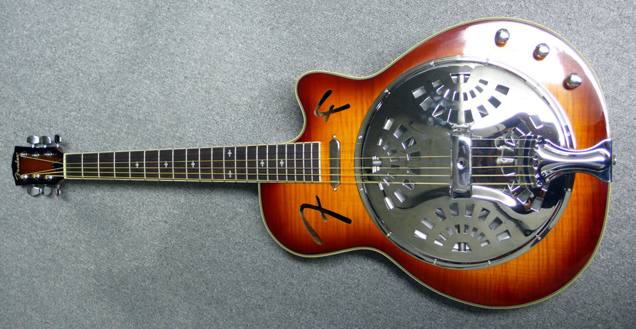 音はどうかというと、僕は、リゾネーターを手にしたのは初めてなんですけど、思ったよりジャキジャキした感じの音では無いですね。まぁ、ボディが木なのでそうなのかもしれませんが、思っていたほど、リゾネーターの反響音が前に出てこない感じです。