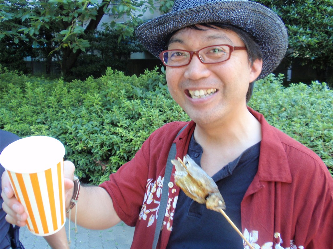 ここの焼き鳥と冷たいビールに、今日は飲まずにステージへ臨む姿勢はすっかり萎えてしまいました。