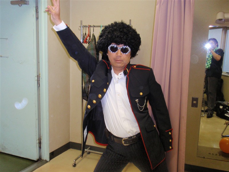 ドンキホーテのカツラが似合います。「サタデーナイトフィーバー」のポーズ。