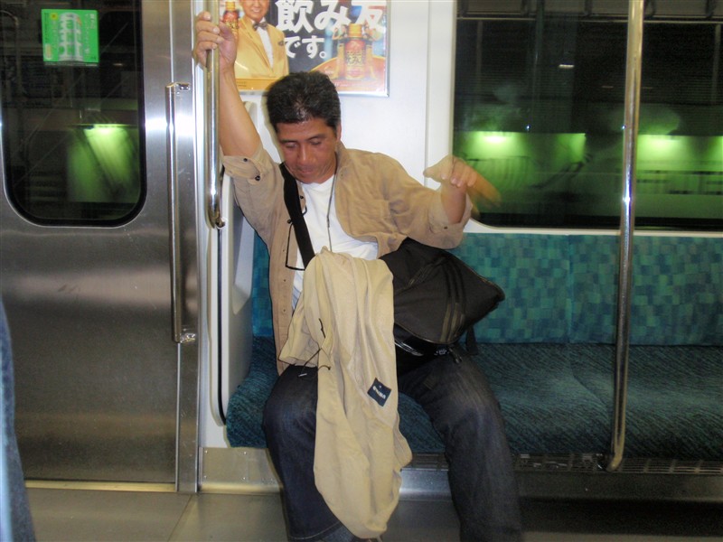 我々が大江隊員のステージを見ている間に、おでんの屋台で6,500円も飲み倒してきたというこの姿。
