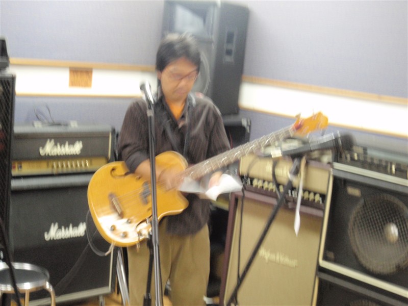 今回のリハではアンプに見放され、ハウリングの嵐だった、くどー隊員。