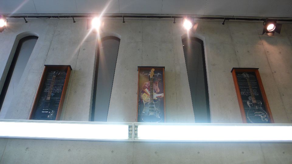 壁面上部にDuaneのポスターとガラスケースに入れられた、Duaneモデルのギターが飾られていた。