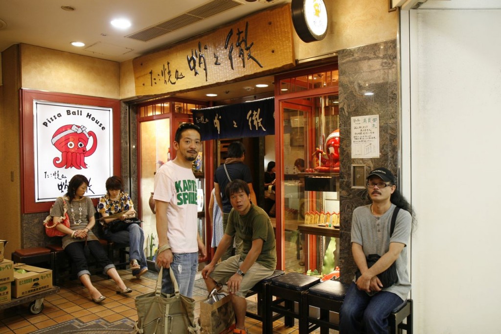 で、さっそくお昼食べましょ、飲みましょって事で、やはり大阪来たらたこ焼きでしょ、ってことで、自分でたこ焼きを焼く有名店へ。