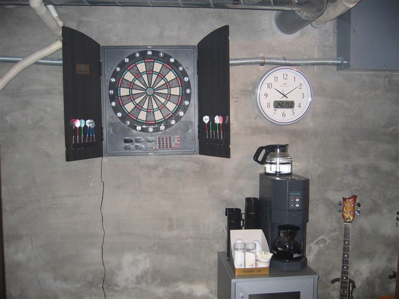 そこそこ広いロビーの壁にはギターが多数吊るしてあります。