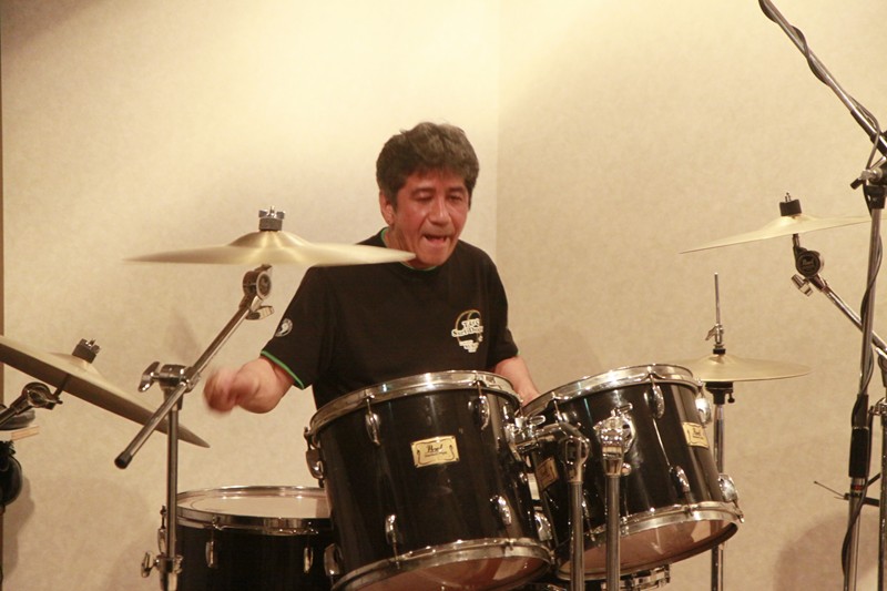 今回、スライドギターの出番が少なかったが、南の風が漂うソロを弾きまくった斉藤隊員。