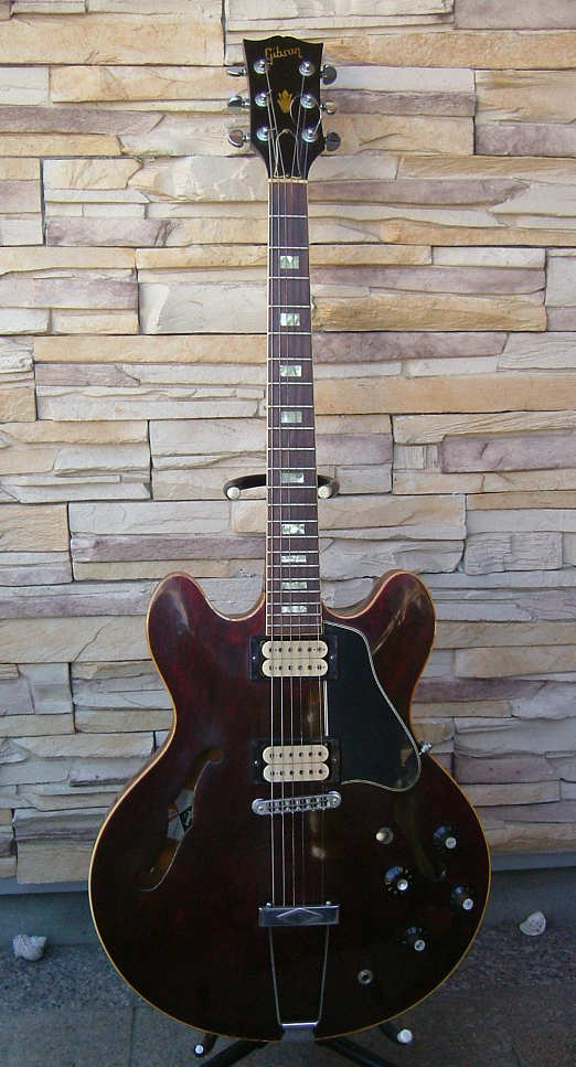 30年間連れ添った335です。大学に入った年の夏休みに購入しました。チェリーレッドも良いのですが、このワインレッドもあまり見かけない色でなかなか気に入っています。数多くのライブをこなした激戦のツワモノですので、生傷はたえません。